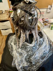 銀紙を使いながらカラーをします