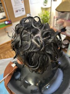 途中経過を確認しながら、パーマをかけていきます