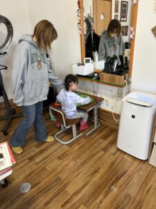 妹ちゃんは、先にカットしたので遊びながら待っています