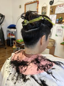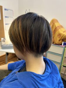 ゆーこちゃんにぴったりな位置でツーブロックのラインを分け取り、慎重にカットを進めていきます。