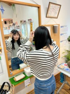 鏡で一緒に雰囲気を確認しつつカット。
