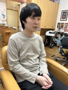 しっかりした髪質で、前髪が目に入ってしまうタイプのお客様。