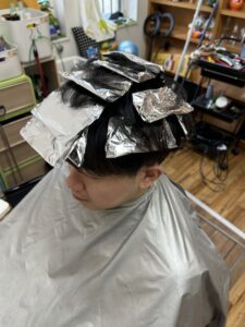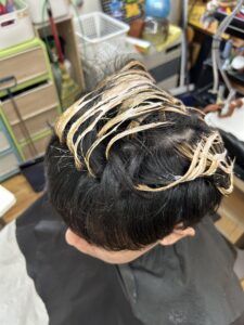 部分的にキンパツ(ブリーチ)を作り、