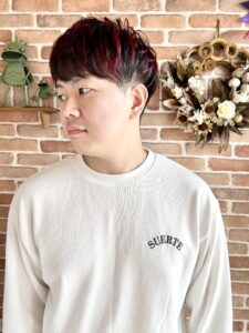赤ハイライトが映える、おしゃれなマッシュスタイル!