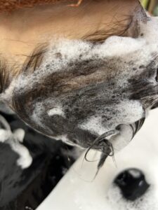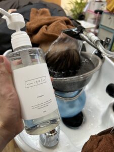 そして、頭皮を潤す《ミガキュシャンプー》で洗います
