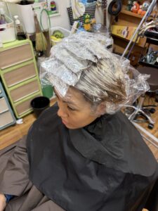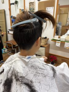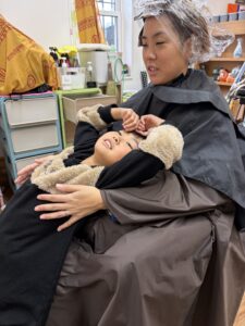 隣では、一緒に髪を切りに来てくれた